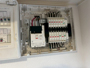写真⑧:新設分電盤内部(Panasonic・50A主幹・各回路ブレーカー)
