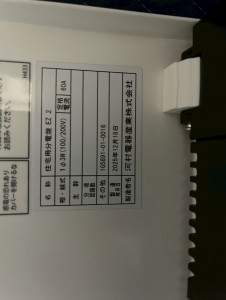 ▲ 分電盤銘板(住宅用分電盤 EZ 2・60A・2025年12月製造)
