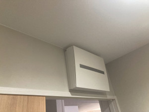 室内モニター アップ|白いスリット型Huaweiモニター。インテリアに馴染む仕上がり